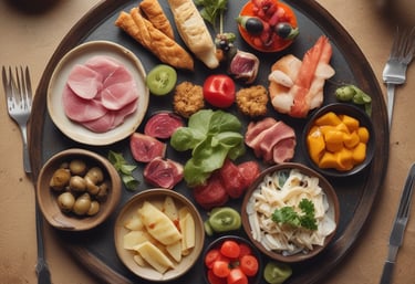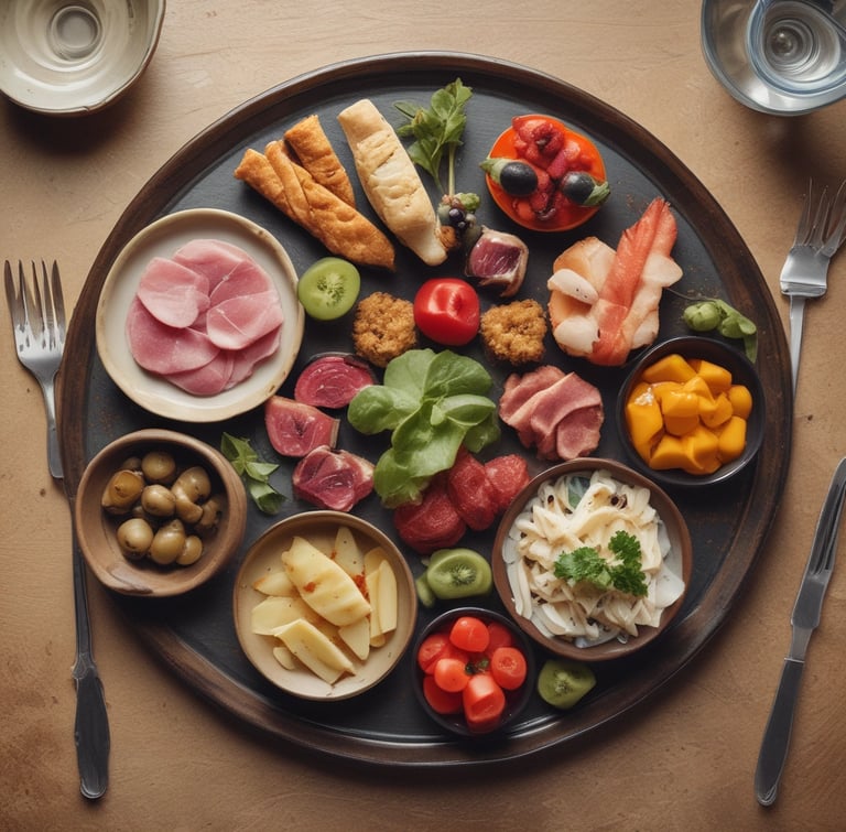 Warme broodjes met eitjes, kaas, ham etc. Fruit